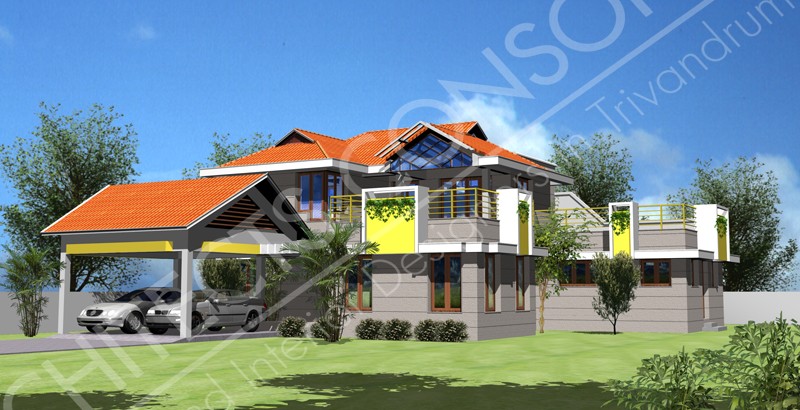 The site of 38.04 cents is located in the village of Idamulakkal village in Pathanapuram taluk of Kollam district in Kerala. The home of Mr. KGK Kurup is an ultra modern house featuring creative external features and the interplay of glass and traditional style roofing making it a class of its own. The house has 4 bedrooms with attached toilets, living room, kitchen, maid room etc. The house has parking area for 2 cars. The total built up area is 3000 sqft. |