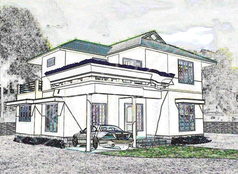 The site is situated close to Arapura junction in Vattiyoorkavu village in Trivandrum district of Kerala measuring 4.37 cents. The home has 3 bedrooms, a living, dining etc and a lounge space on the first floor. The total built up area is 1800 sqft.