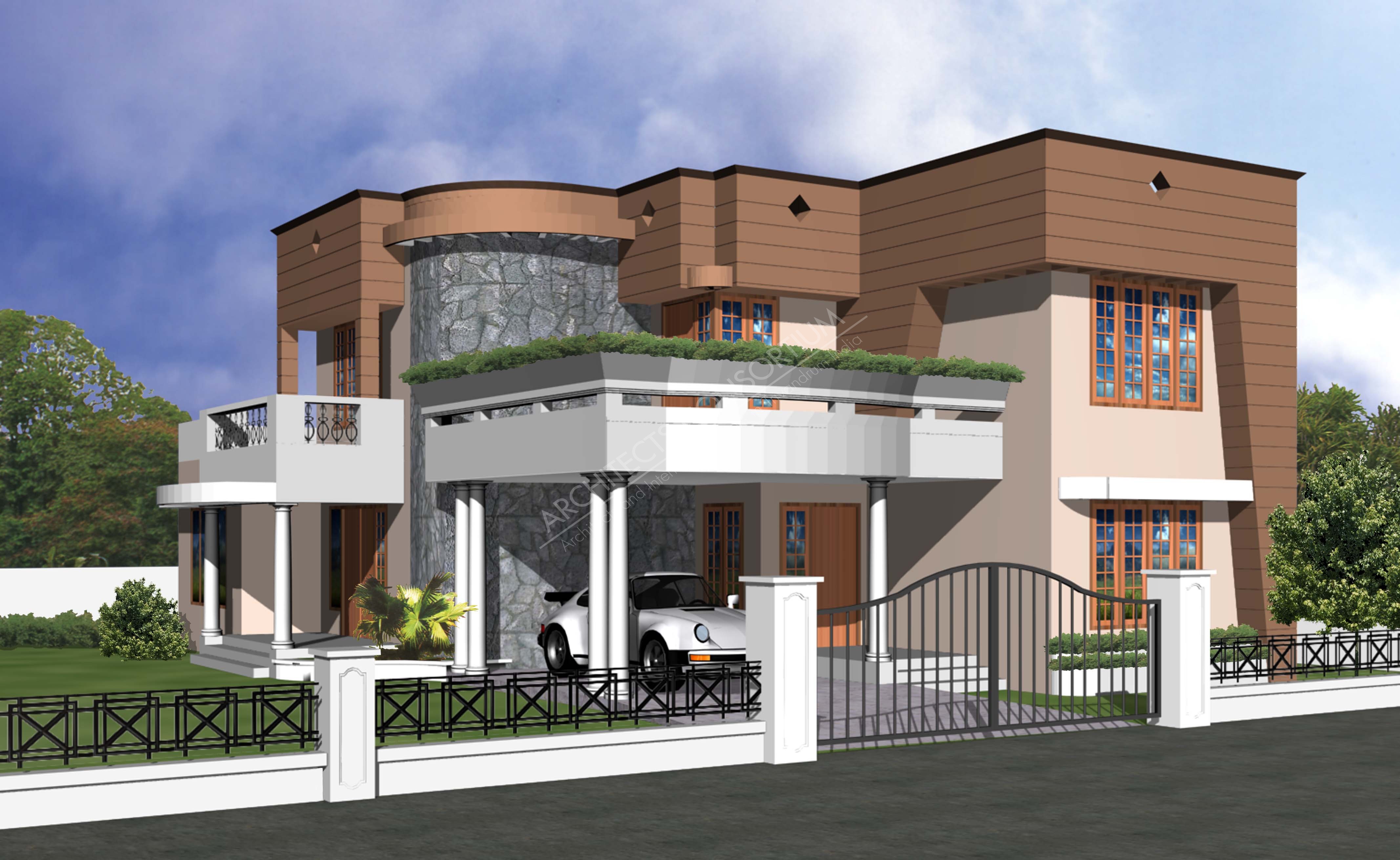 The home of Mr. Vijayan is located in 5 cents of land at Pattom in Trivandrum district of Kerala. A home with rich external looks featuring balcony garden and twin columns supporting the car porch. The total built up area is 1650 sqft. The house has 4 bedrooms with 3 attached bathrooms. |