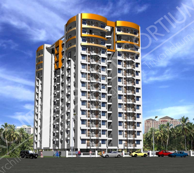 This residential building is located at Nanthancode in Trivandrum district of Kerala in an area of 62.98 cents and is 13 floors high with 82 dwellings, excluding the basement parking. Each floor has 4 numbers of 3 BHK flats and 2 numbers of 2 BHK flats. The total carpet area is 75000 sqft and parking is provided for 58 cars.