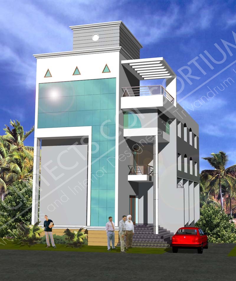 This projects purpose is to house the P and T employees Co-Operative society in an area of 15 cents. The basement floor is for parking, two floors above house the banking space, with the third housing the conference facility and presidents chamber. The ground floor and the first floor are commercial areas and the second floor is a residential block. Each floor is of 4000 sqft area.
