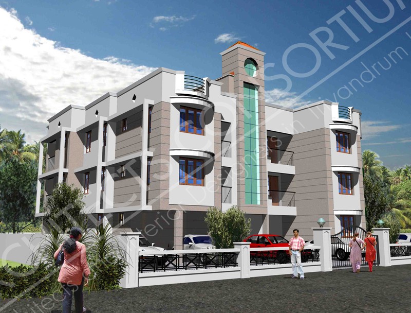 This residential project is located at Pangappara in Trivandrum district of Kerala in an area of 11.5 cents and is a ground+ 2 building. It has 2 flats on every floor each being 2 BHK apartments. The total area is 825 sqft.