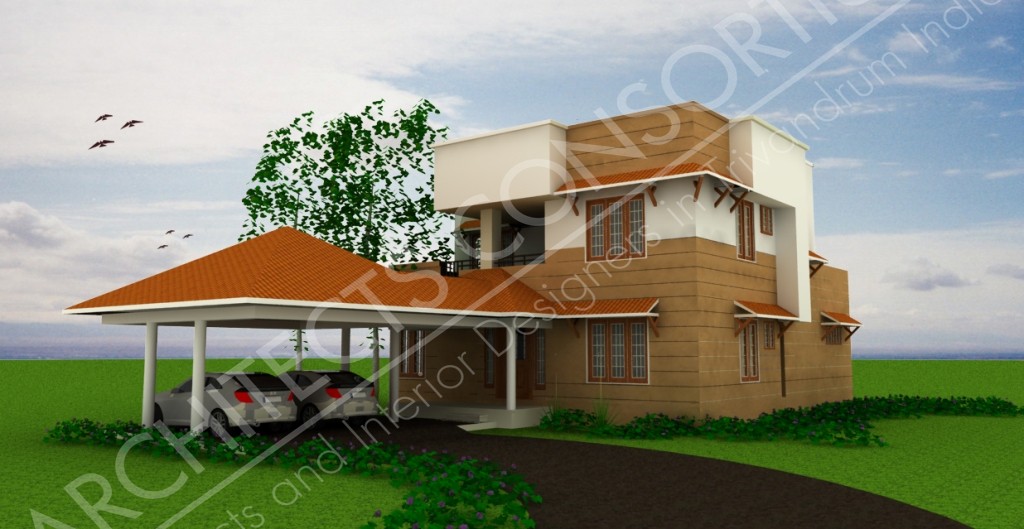 This home is at Kowdiar in Trivandrum district of Kerala. The plot measures 7 cents and the total plinth area is 2200 sqft. The home has 4 bedrooms, an office room along with other requirements.