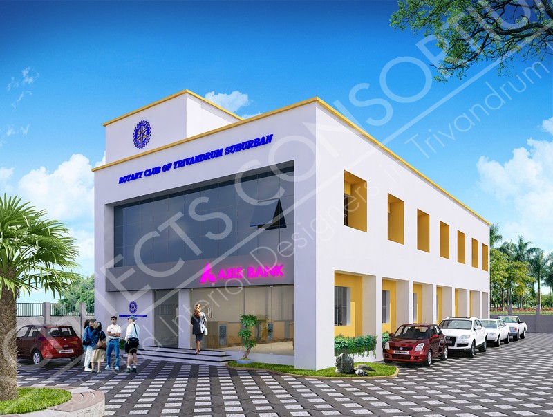 This building is situated at Kadakampally in Trivandrum district of Kerala in an area of 22 cents. The total built up area is 6500 sqft. It consists of a hall on the ground floor and an auditorium on the first floor. The total carpet area is 4700 sqft.