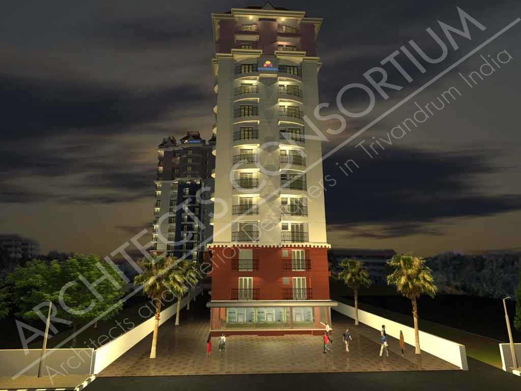 This landmark building is situated near Technopark at Kazhakootam on the bypass road. These 160 apartments are divided into 2 towers. One of them is a 17 storied tower. There are 3 common basements facilitating 100% car parking services and recreation facilities, etc. |