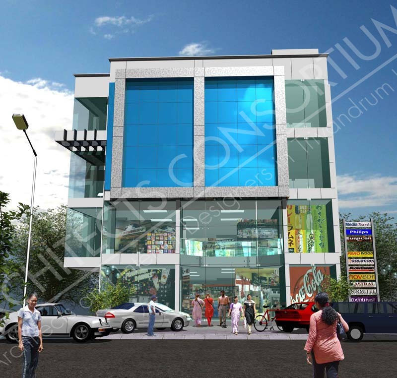 Is a commercial project located at Shasthamangalam in Trivandrum district of Kerala in an area of 12.85 cents. The shops are divided into 2 levels in the ground and first floor level whereas the basement level serves as parking space. The total built up area is 9000 sqft. |